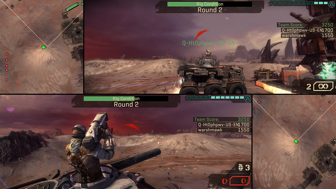The demo consisted of 6 rounds of ground pounding action and air to air combat as you are working to protect your Rig from the Outcasts who are hell-bent on destroying it in the Echo map.
